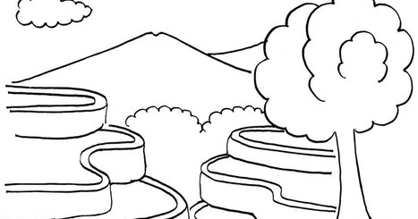 Gambar sketsa gambar pemandangan alam mudah mewarnai 2018 bukit di via rebanas.com.